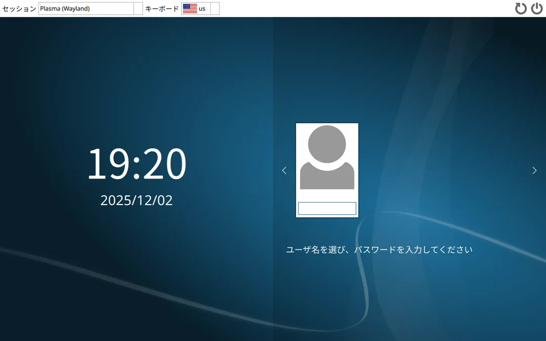 しかし、ログイン後、ロックをすると表示されるのは、見慣れたKDEテーマのロック画面です。